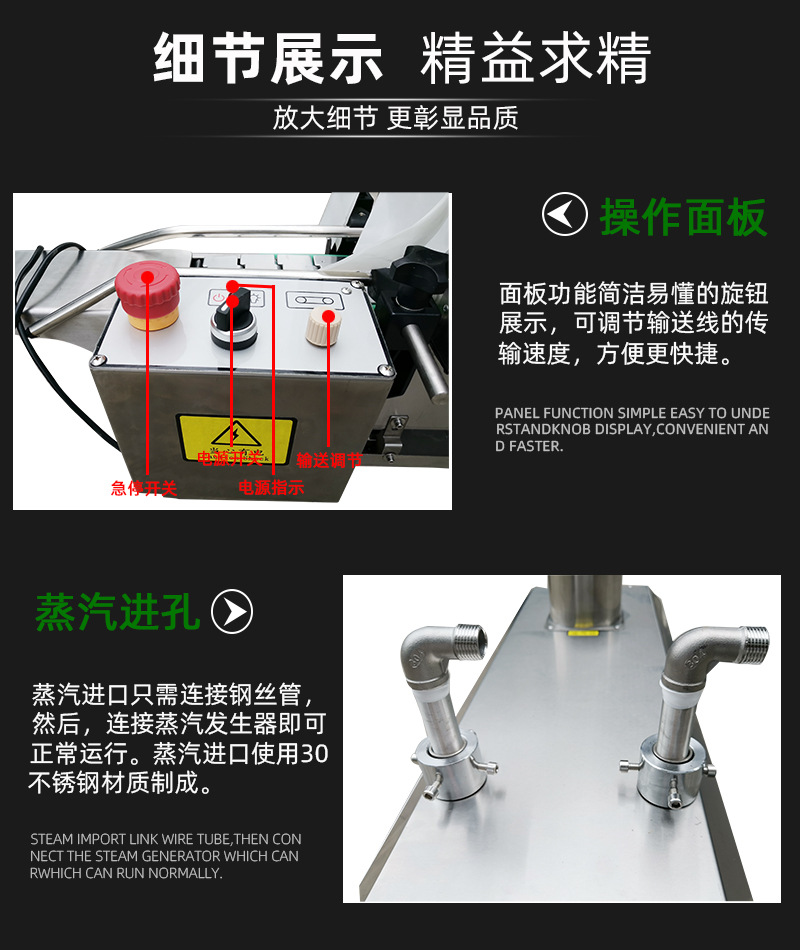 - 蒸汽壓力:合適的蒸汽壓力對于確保蒸汽能夠均勻、快速地噴射到包裝膜上至關重要,要根據設備的要求和實際生產情況,選擇具有合適蒸汽壓力的蒸汽收縮機,同時部分設備配備壓力表,可直觀地觀察蒸汽壓力2.