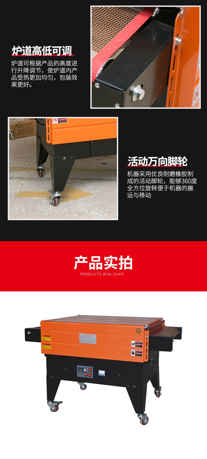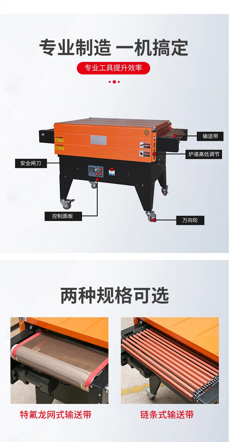 - 氣流覆蓋全面:噴氣式熱收縮機的噴氣裝置可以設計成多個噴氣嘴,能將熱氣流均勻地噴射到產(chǎn)品和熱收縮膜的各個部位。不像傳統(tǒng)熱收縮機可能存在加熱元件分布不均或熱傳遞死角的情況,導致薄膜收縮不均勻。比如在包裝形狀不規(guī)則的產(chǎn)品時,噴氣式熱收縮機能夠通過調(diào)整噴氣嘴的角度和氣流強度,使薄膜在產(chǎn)品的凹凸部位都能均勻收縮,而傳統(tǒng)熱收縮機可能會在產(chǎn)品的某些角落或凸起處出現(xiàn)薄膜皺褶或收縮不緊的現(xiàn)象2。