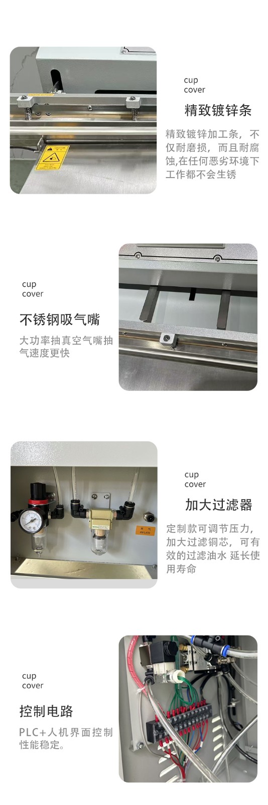 外抽真空包裝機不受包裝容器形狀和尺寸限制,無論是大型工業零部件還是小型家用物品,只要抽氣口能與抽氣嘴連接,均可進行真空包裝