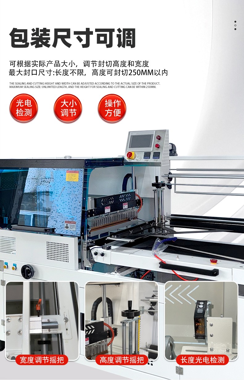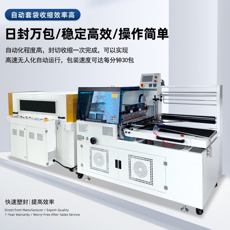 全自動邊封熱收縮包裝機自動化程度高,邊封設計使產品包裝長度無限制
