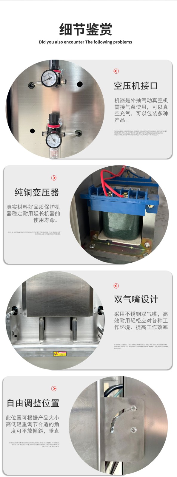 硬件適配保障:這類設備的外殼和真空室多采用不銹鋼材質,抗腐蝕、不易生銹,即便接觸醬料、海鮮等帶水分的物料,也能穩定運行,且清潔方便,可避免潮濕環境對機器的損壞。部分機型還針對液態物料優化了密封結構,防止包裝時液體滲漏影響設備部件。