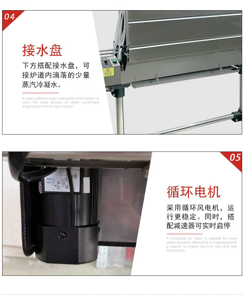 • 收縮通道:內部設有蒸汽噴射孔或噴嘴,通道長度與寬度根據產品尺寸可調,確保蒸汽均勻覆蓋。