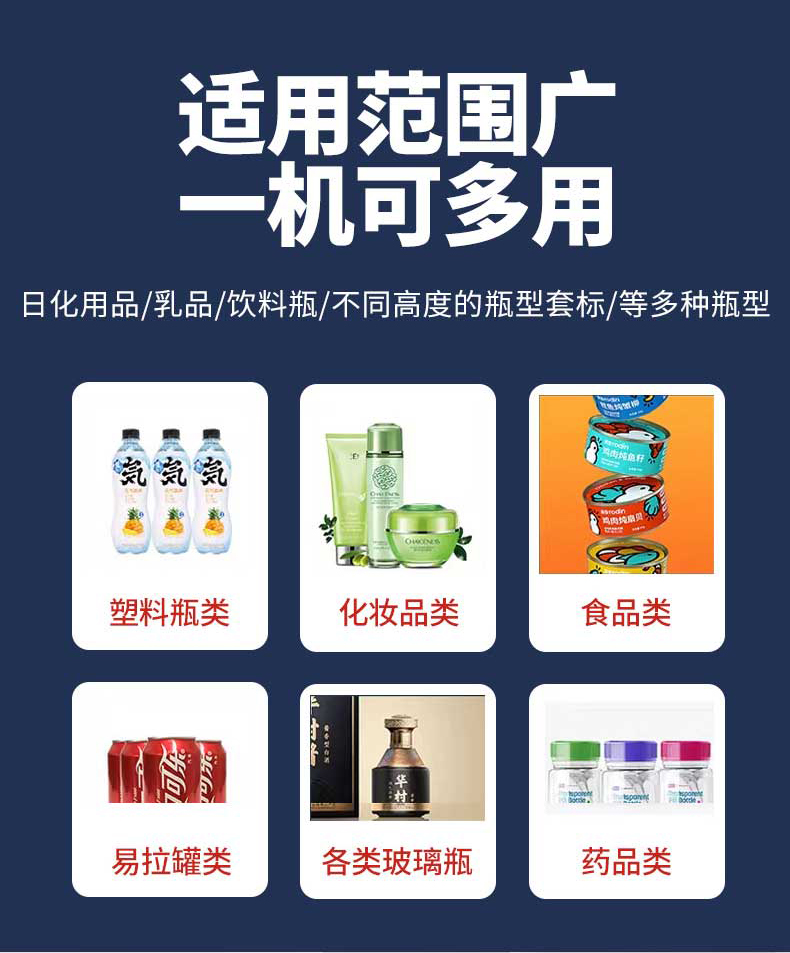 • 適配不同形狀產品:對于圓瓶類的飲料瓶、香水瓶,蒸汽可無死角環繞瓶身,讓收縮膜從頂部到底部勻速收縮,貼合瓶身曲線且無褶皺;針對方瓶類的化妝品禮盒、醬料瓶,蒸汽能均勻滲透到平面與棱角,收縮膜精準嵌入邊角,使包裝方正挺括;就算是扁瓶類的酒壺、扁狀洗手液瓶,蒸汽也能適應其特殊輪廓,讓收縮膜完美貼合,凸顯產品造型。