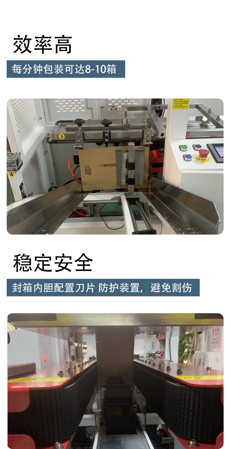 - 自動化程度高:一次完成紙箱吸箱、開箱、成型、折底、封底等包裝工序,可大大減少生產人員和勞動強度。