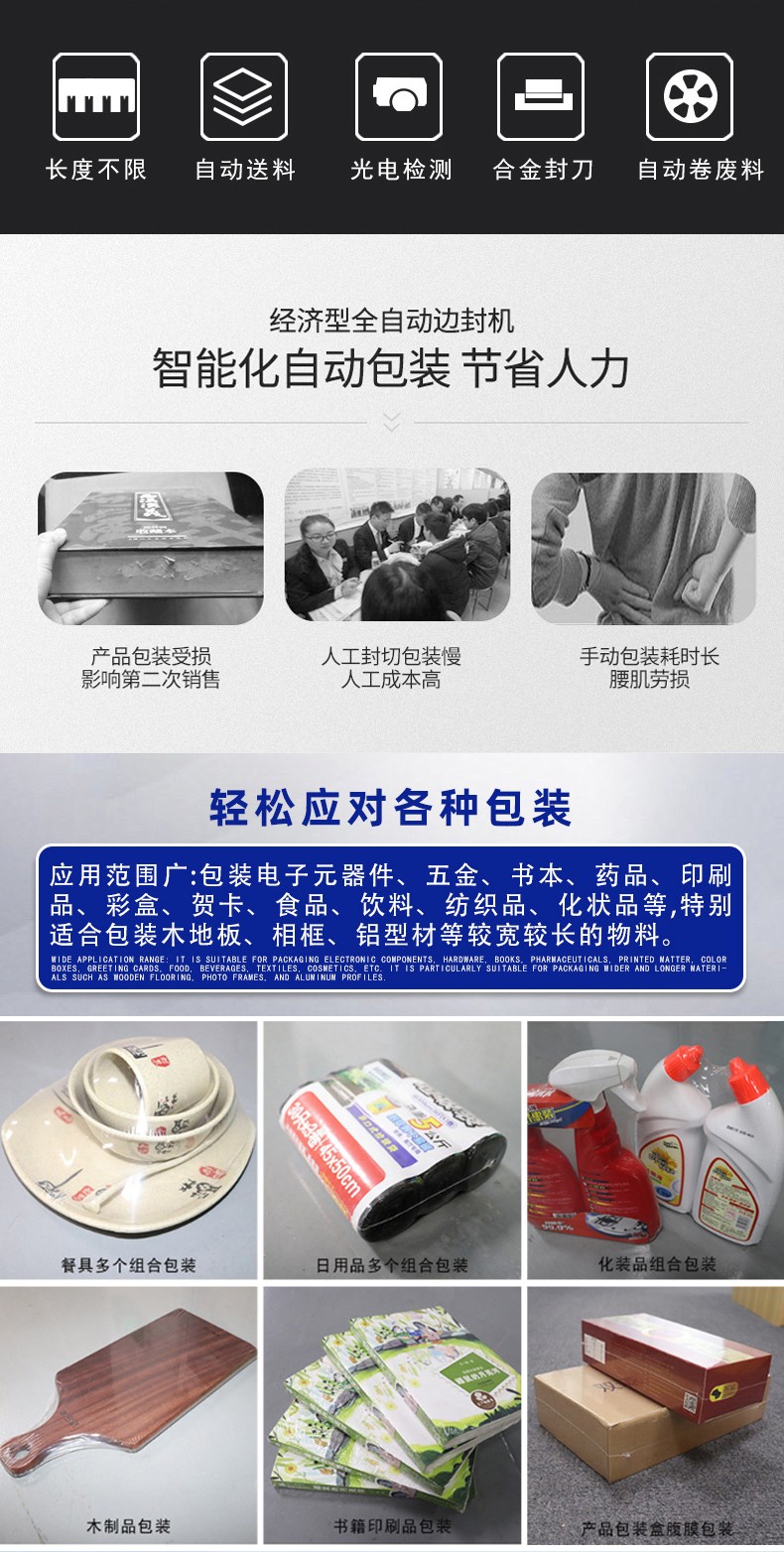全自動邊封熱收縮機的控制系統是整個設備的 “大腦”,它負責協調和控制各個部件的運行,以實現高效、精準的包裝過程。以下是對其控制系統的詳細介紹: 硬件組成 PLC 控制器 核心運算與控制:PLC(可編程邏輯控制器)是控制系統的核心部件。它接收來自各個傳感器的信號,如產品到位傳感器、薄膜檢測傳感器等,根據預設的程序進行邏輯運算和處理,并向各個執行元件發送控制指令,如驅動電機、氣動元件等,以精確控制送料、套膜、封切和熱收縮等各個包裝工序的執行順序和時間。 穩定性與可靠性:具有高可靠性,能在惡劣的工業環境下穩定工作,抗干擾能力強,可確保設備長時間連續運行而不出現故障,保證包裝過程的穩定性和一致性。 觸摸屏 人機交互界面:觸摸屏作為人機交互的窗口,為操作人員提供了直觀、便捷的操作平臺。操作人員可以通過觸摸屏幕輕松設置各種包裝參數,如封切時間、收縮溫度、輸送速度等。同時,觸摸屏還能實時顯示設備的運行狀態,如當前工作模式、各部件的運行參數、故障報警信息等,方便操作人員隨時了解設備運行情況并及時進行調整和維護。 參數設置與存儲:支持多種參數的設置和存儲,可根據不同的產品包裝需求,預設多個包裝方案,操作人員只需在觸摸屏上選擇相應的方案,即可快速切換設備的工作參數,無需重新逐一設置,大大提高了工作效率。此外,觸摸屏還具備密碼保護功能,可防止非授權人員隨意修改參數,確保設備運行的安全性和穩定性。 軟件功能 參數設置與調整功能 精確控制:通過控制系統的軟件,能夠精確設置和調整封切時間、收縮溫度、輸送速度等關鍵參數。例如,封切時間可以精確到毫秒級,收縮溫度可在一定范圍內以較小的溫度梯度進行調整,輸送速度也能根據產品尺寸和包裝要求進行精確設定,從而保證不同產品都能獲得理想的包裝效果。 自動調節與優化:部分先進的控制系統還具備自動調節功能,能夠根據預設的包裝質量標準,自動對參數進行微調優化。例如,在熱收縮過程中,系統可根據熱收縮膜的收縮情況,自動調整加熱溫度和風機風速,以確保熱收縮膜均勻收縮,緊密貼合產品表面。 運行監控與故障診斷功能 實時監控:控制系統實時監控設備各個部件的運行狀態,包括電機的轉速、加熱元件的溫度、氣動元件的壓力等。通過傳感器將這些實時數據反饋給 PLC 控制器,再由觸摸屏以圖形化界面的形式展示給操作人員,使操作人員能夠直觀地了解設備的運行情況。 故障診斷與報警:一旦檢測到設備出現異常情況,如溫度過高、電機過載、薄膜供應不足等,控制系統會立即進行故障診斷,并在觸摸屏上顯示詳細的故障信息和報警提示。同時,系統還會自動記錄故障發生的時間、位置和相關參數,以便維修人員快速定位和排除故障。有些控制系統還具備遠程監控和報警功能,可通過網絡將故障信息發送給相關人員的手機或電腦,實現及時響應和處理。 生產數據統計與管理功能 數據統計:控制系統能夠自動統計生產過程中的各種數據,如包裝數量、生產速度、設備運行時間、故障停機時間等。這些數據對于企業的生產管理和質量控制具有重要意義,可幫助企業分析生產效率、評估設備性能、制定生產計劃和進行成本核算。 數據存儲與查詢:生產數據可存儲在控制系統的內存或外部存儲設備中,方便操作人員隨時查詢和調用。同時,數據還可通過網絡接口導出到計算機或企業的生產管理系統中,以便進行進一步的分析和處理,為企業的決策提供數據支持。 通信與聯網功能 內部通信:控制系統通過內部通信總線實現各個硬件模塊之間的高速數據傳輸和通信,確保 PLC 控制器、觸摸屏、傳感器和執行元件等之間的信息交互準確、及時,從而實現設備各部件的協同工作。 外部聯網:一些高端的全自動邊封熱收縮機控制系統支持外部聯網功能,可通過以太網、WiFi 等方式與企業的生產管理系統或其他設備進行聯網通信。這樣,企業可以實現對多臺設備的集中監控和管理,優化生產流程,提高生產效率和管理水平。例如,在一個大規模的包裝生產線上,通過聯網功能可以將多臺熱收縮機與前端的灌裝設備、后端的貼標設備等進行整合,實現整個包裝生產線的自動化和智能化控制