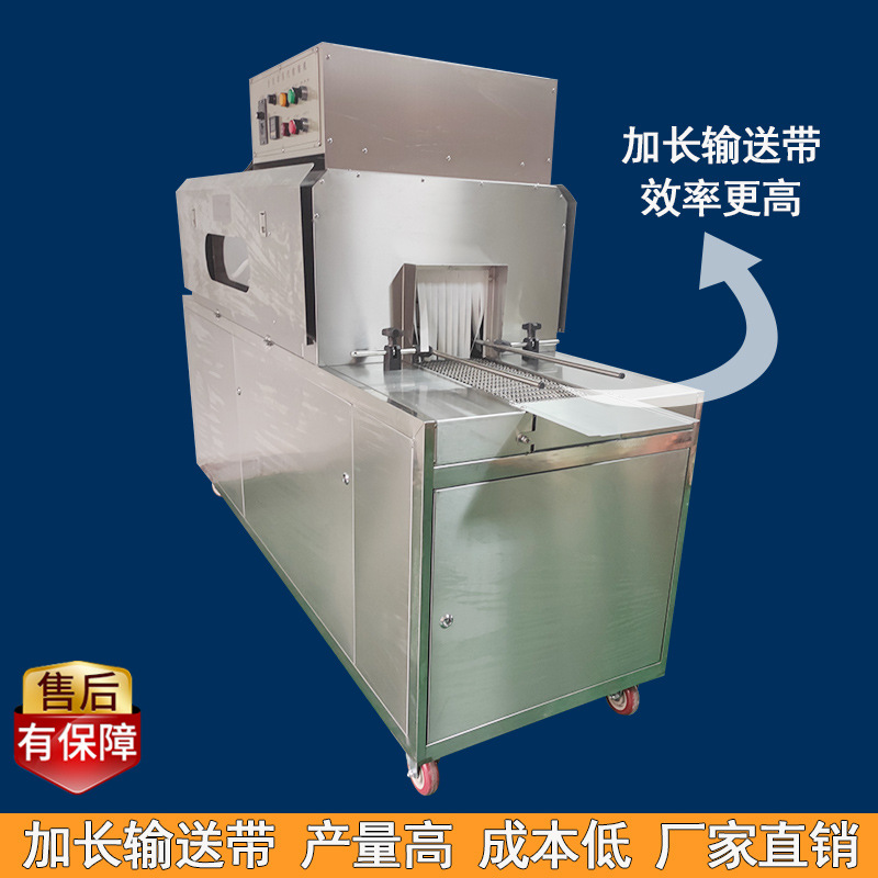 收縮階段:包裝好的產(chǎn)品接著被輸送到蒸汽收縮部分的收縮通道入口。此時,蒸汽發(fā)生系統(tǒng)已經(jīng)產(chǎn)生了合適的蒸汽,蒸汽通過噴頭均勻地噴灑在產(chǎn)品的包裝薄膜上。包裝薄膜在蒸汽的熱量作用下開始收縮,緊密貼合在產(chǎn)品表面。產(chǎn)品在輸送系統(tǒng)的推動下繼續(xù)在收縮通道內(nèi)移動,保證薄膜各個部分都能充分收縮。收縮完成后,通風(fēng)口排出蒸汽,產(chǎn)品在外界環(huán)境下冷卻定型,最終完成蒸汽收縮包裝,從出口輸送帶送出一體機。