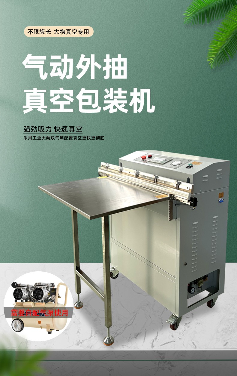 - 氣動外抽真空包裝機是自動化程度相對較高的設備,它利用氣動系統和真空泵協同工作,能夠快速、準確地完成抽氣和密封操作。而手動真空包裝機主要依靠人力來操作抽氣和密封過程。在包裝效率上,氣動外抽真空包裝機遠遠高于手動真空包裝機。例如,在一個小型的食品作坊,如果使用手動真空包裝機,可能一個工人一小時只能包裝幾十件產品,而使用氣動外抽真空包裝機,在相同時間內可以包裝幾百件產品。并且氣動外抽真空包裝機的真空度和密封質量更加穩定,手動真空包裝機由于人為因素,可能會出現真空度不足或密封不好的情況。