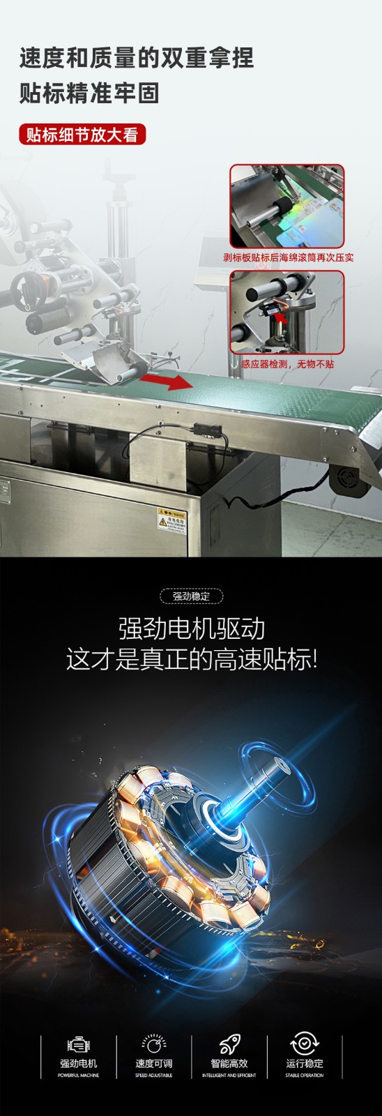 - 高速貼標(biāo):全自動(dòng)分頁(yè)貼標(biāo)機(jī)采用先進(jìn)的機(jī)械結(jié)構(gòu)和控制系統(tǒng),具備極高的貼標(biāo)速度。一般來說,其貼標(biāo)速度可達(dá)每分鐘 100-300 張甚至更高,具體速度取決于設(shè)備的型號(hào)和配置。相比之下,人工貼標(biāo)速度慢,且難以長(zhǎng)時(shí)間保持穩(wěn)定的高效率,全自動(dòng)分頁(yè)貼標(biāo)機(jī)可以持續(xù)穩(wěn)定地高速運(yùn)行,大大縮短了產(chǎn)品的貼標(biāo)時(shí)間,提高了整體生產(chǎn)效率。