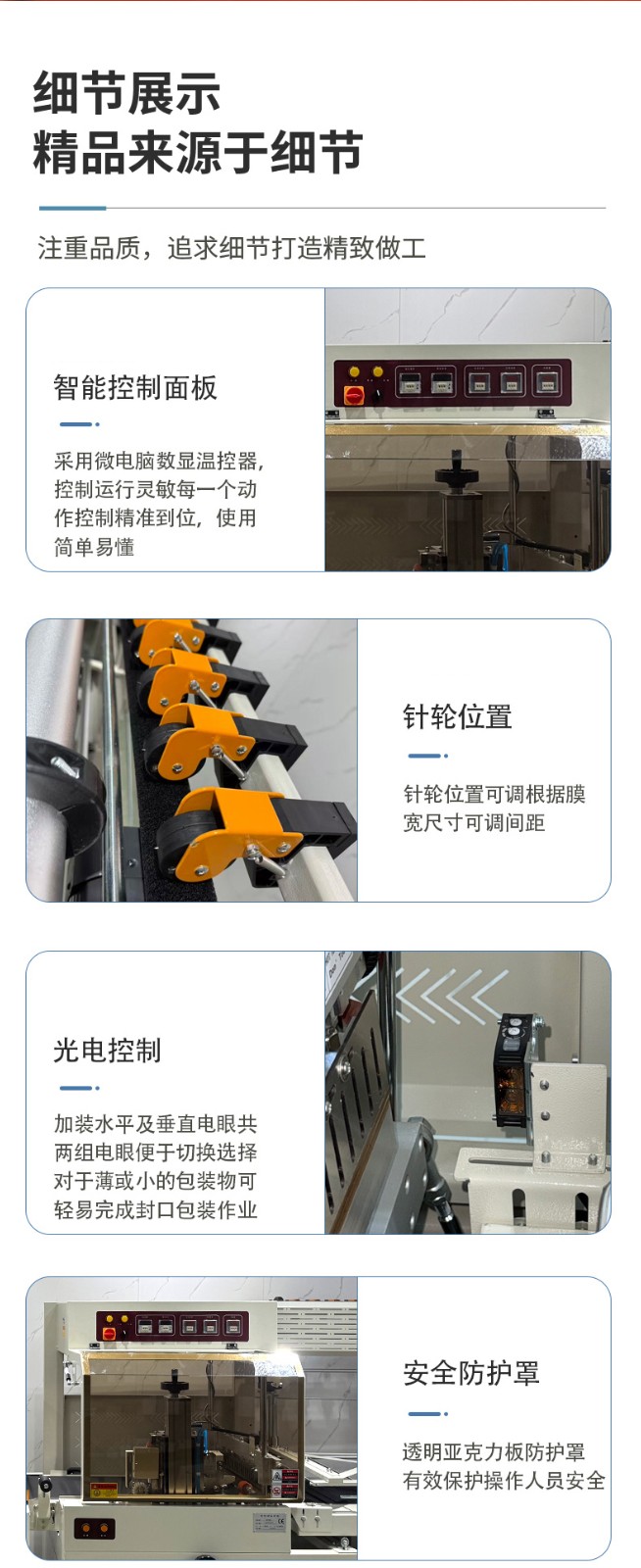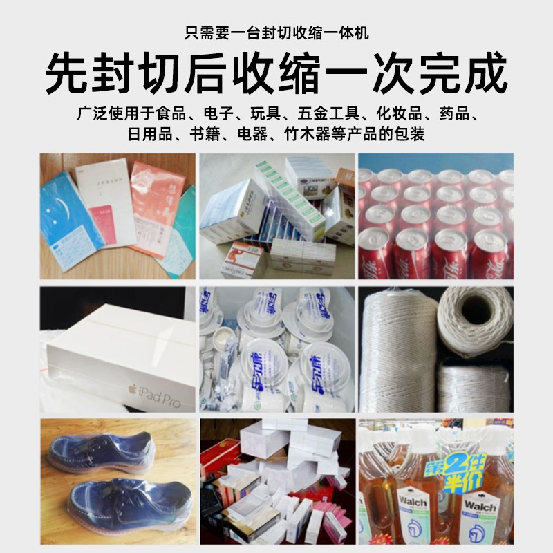 • 適用范圍廣4:邊封設計的包裝機可包裝長度不限的產品,通過調整還能適應不同寬度、高度的產品包裝,可用于 POF、PVC 等多種熱收縮膜,能滿足食品、電子、醫藥、日化等多個行業的包裝需求。