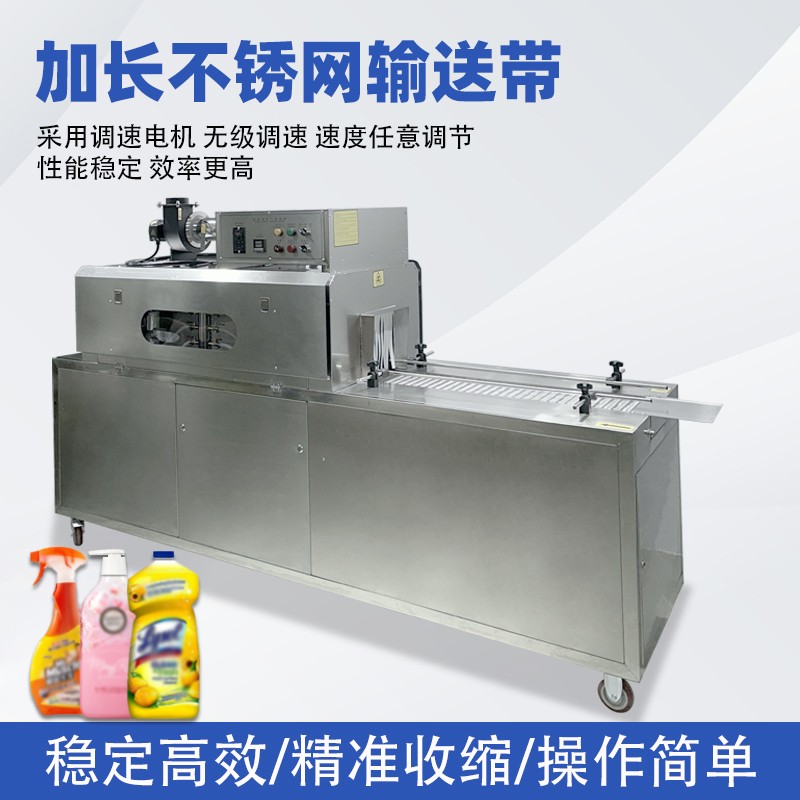 - 前期準備與輸送:先人工或自動化設備將套好收縮膜(如 PVC、PET 膜)的產品放置在輸送帶上,輸送帶通過無級調速系統(tǒng)啟動,將產品勻速送入收縮通道。