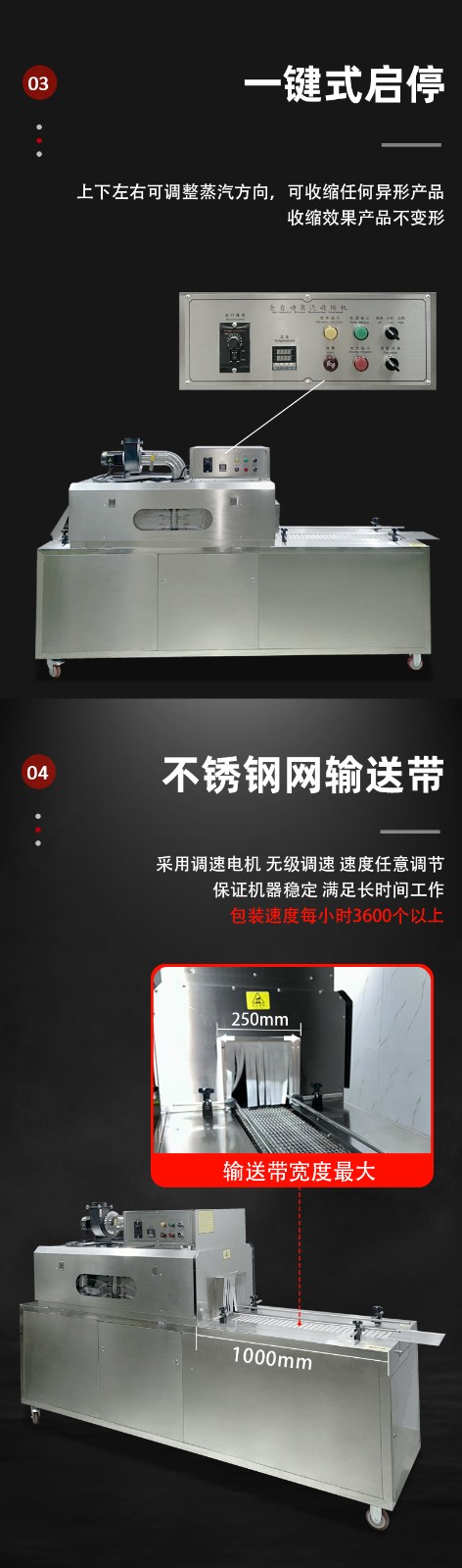 蒸汽收縮一體機的優(yōu)勢源于其對 “蒸汽加熱” 特性的充分利用,以及人性化的結構設計,具體特點如下: