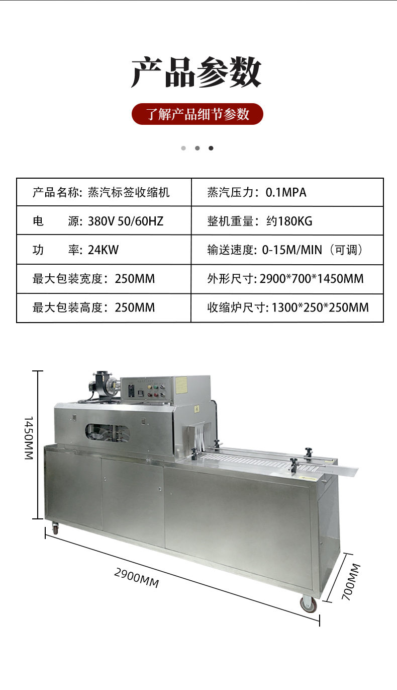 設備的結構設計圍繞 “蒸汽產生 - 加熱收縮 - 產品輸送 - 參數控制” 展開,核心部件包括四大模塊: