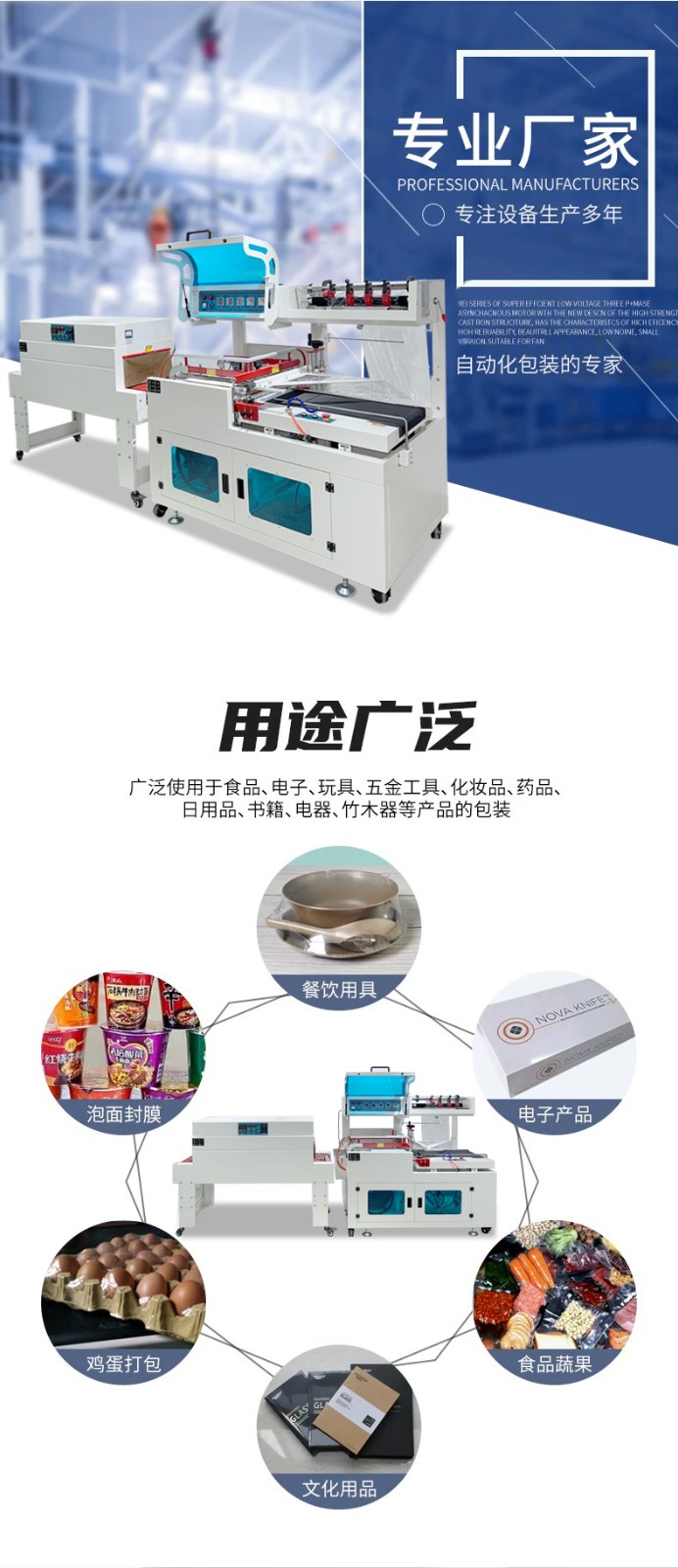 - 可適配多種包裝膜(POF 環保膜、PE 耐穿刺膜、PVC 經濟型膜),滿足不同行業需求(如食品用 POF 膜,工業件用 PE 膜);