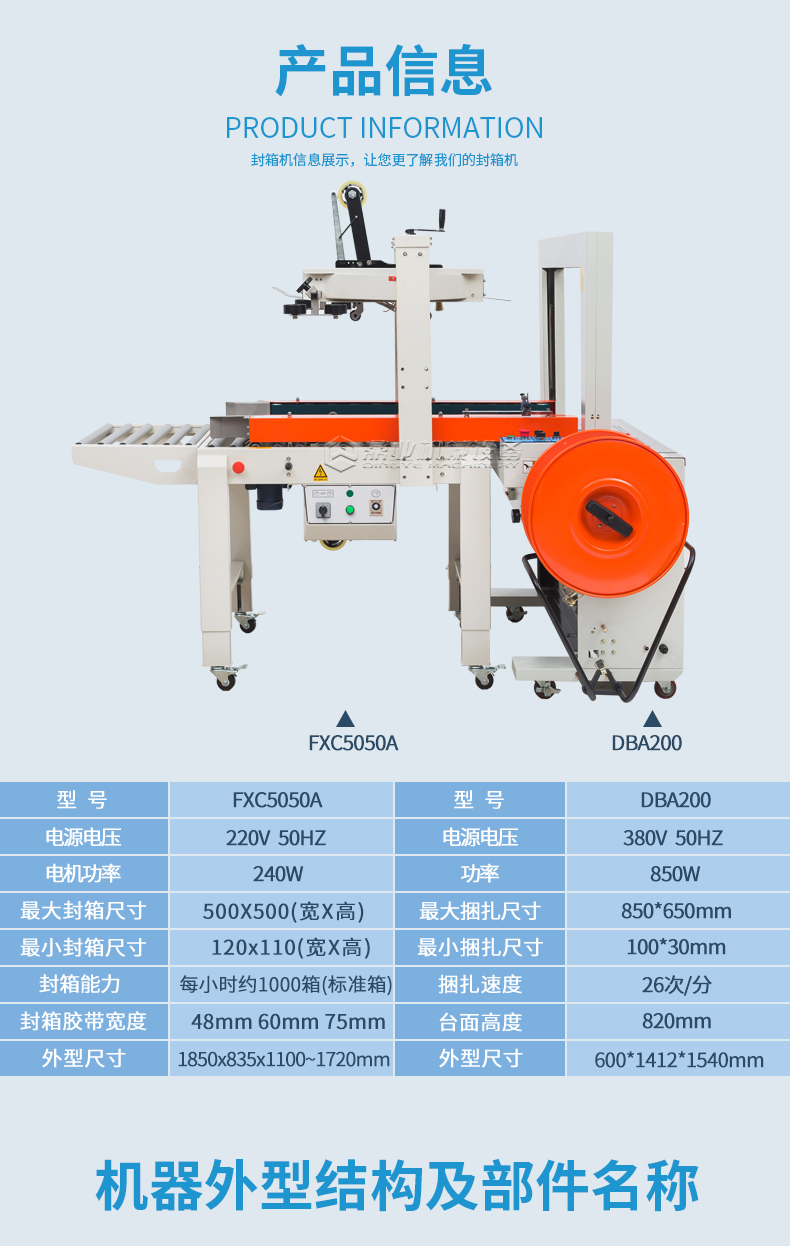 FXC-5050A封箱機 +DBA200 捆扎機