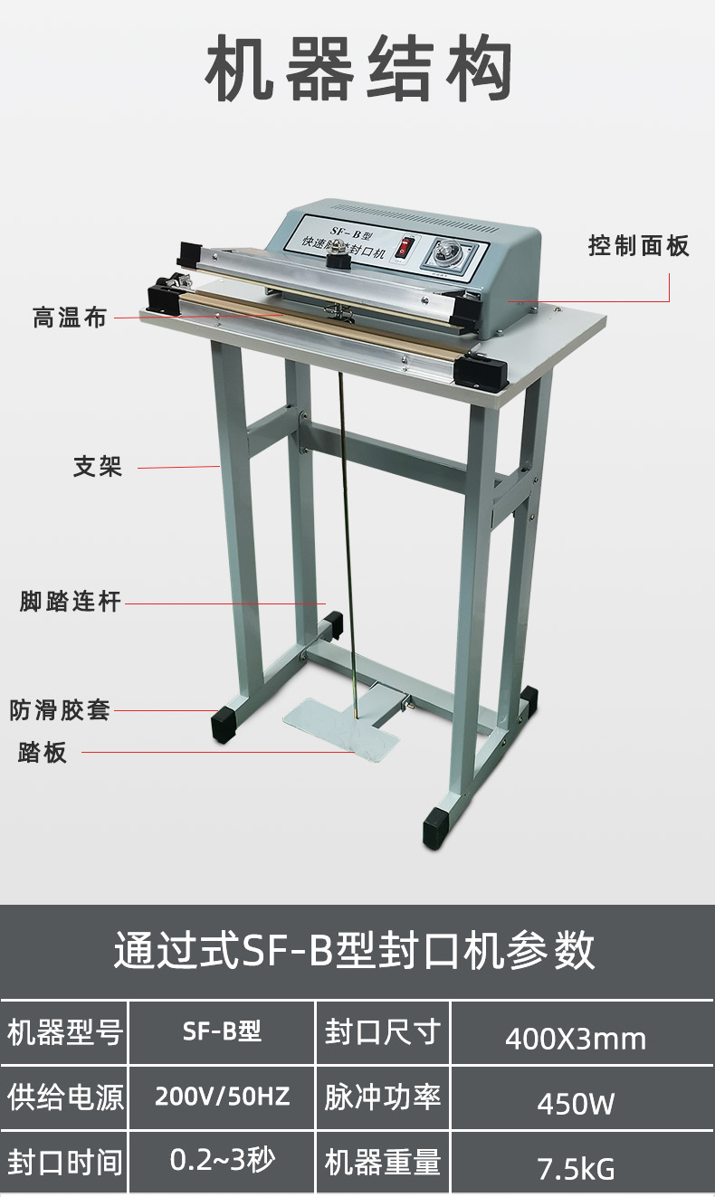 SF-B400工廠直銷腳踏式薄膜封口機通過式收縮膜封切機加熱快速封口機